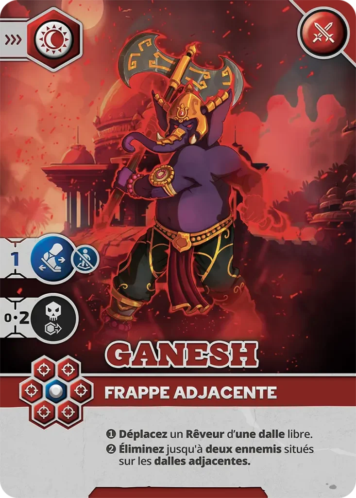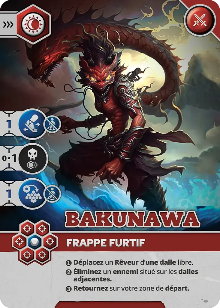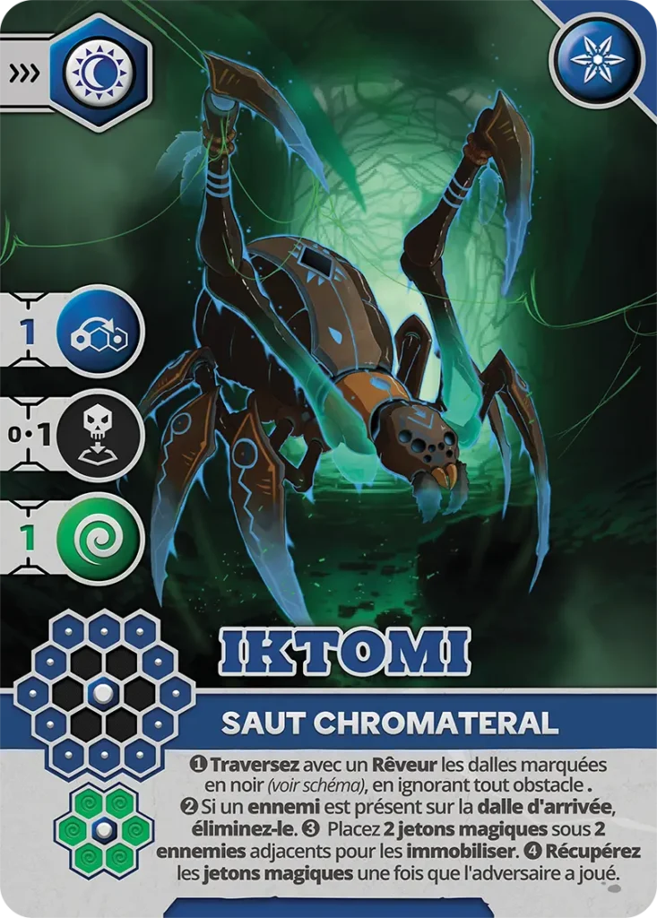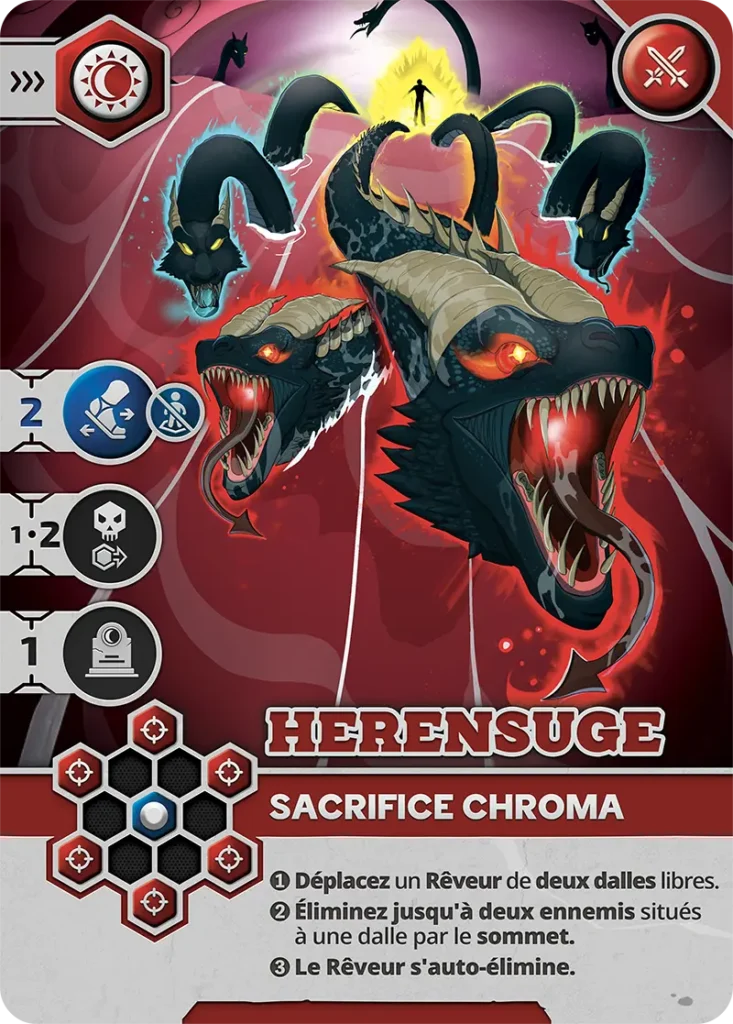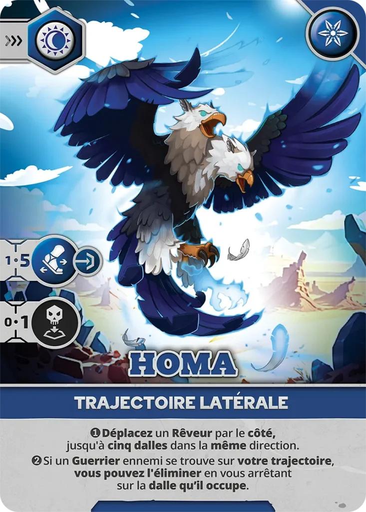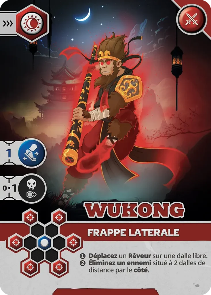 - Vulnérabilité : Peut être éliminé sur les cases visibles (1, 3, 5, 6) par un Pourfendeur ou un Rêveur avec carte d’Attaque