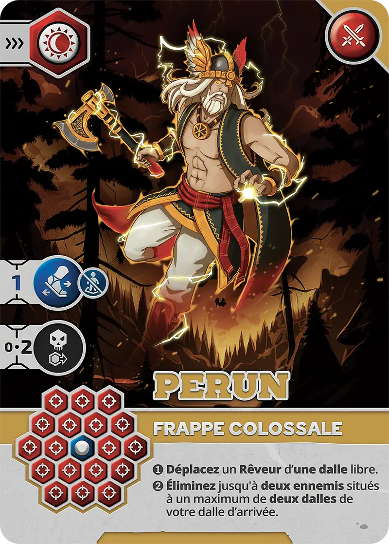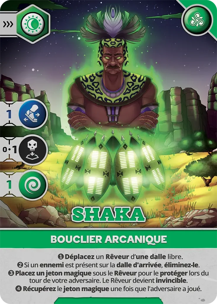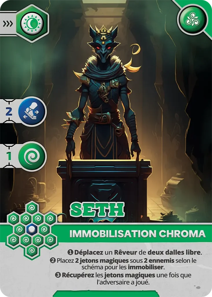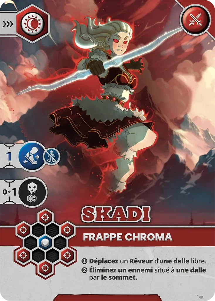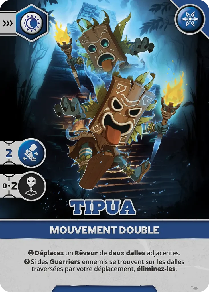 - Vulnérabilité : Peut être éliminé sur les cases visibles (1, 3, 5, 6) par un Pourfendeur ou un Rêveur avec carte d’Attaque